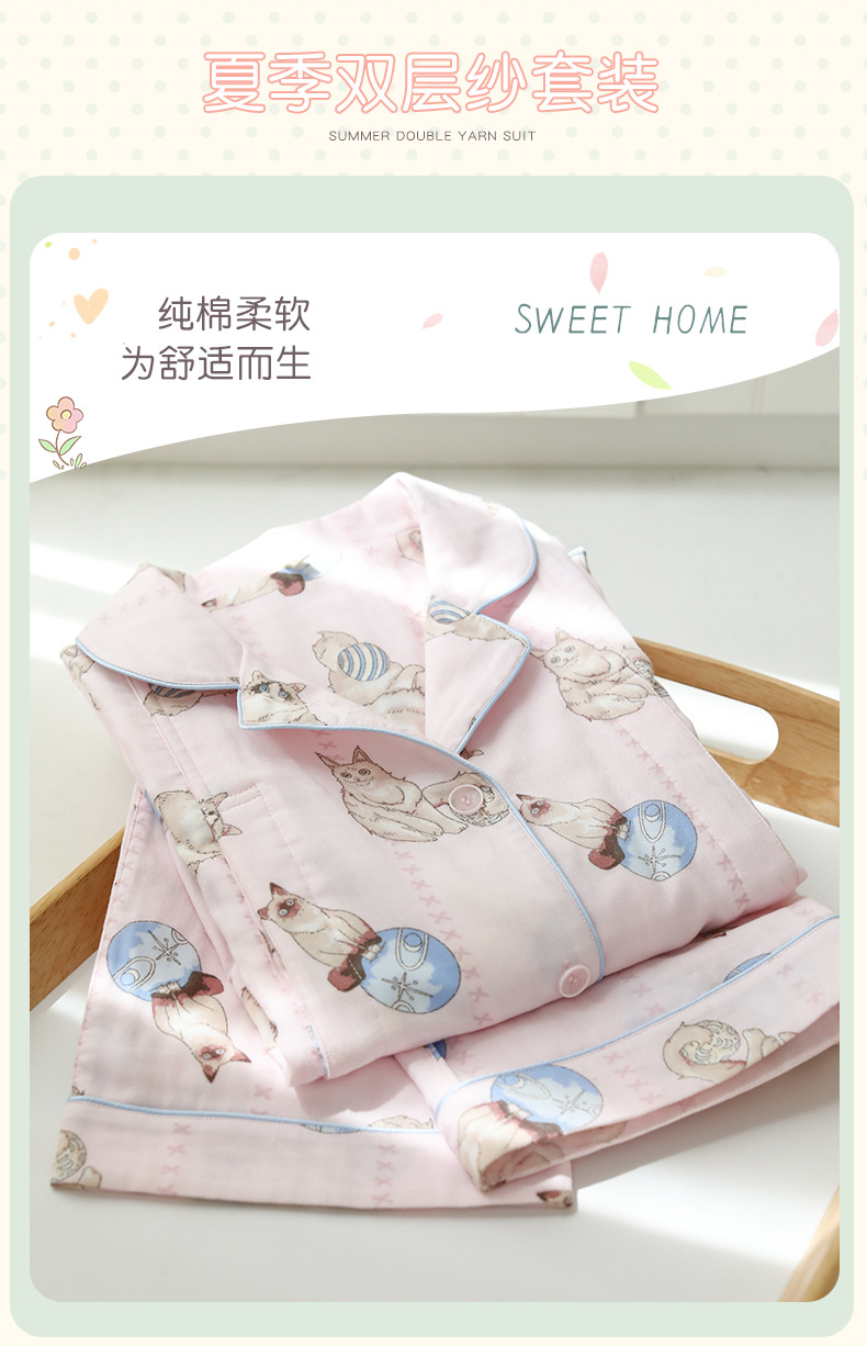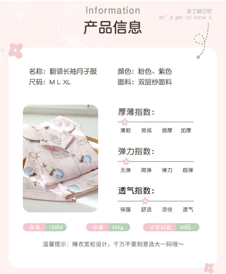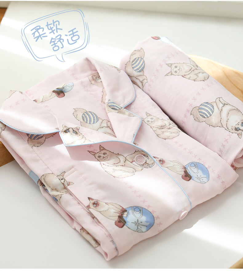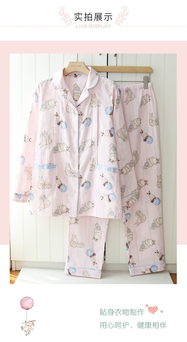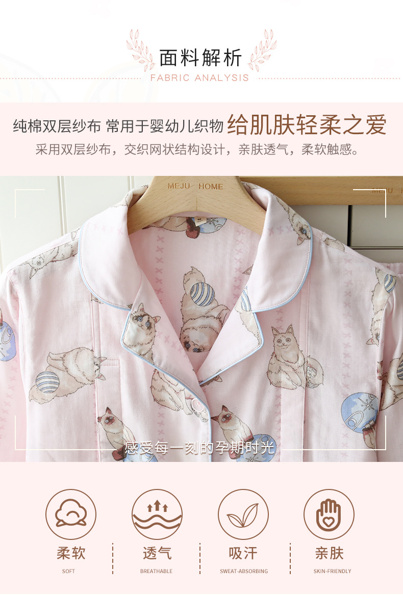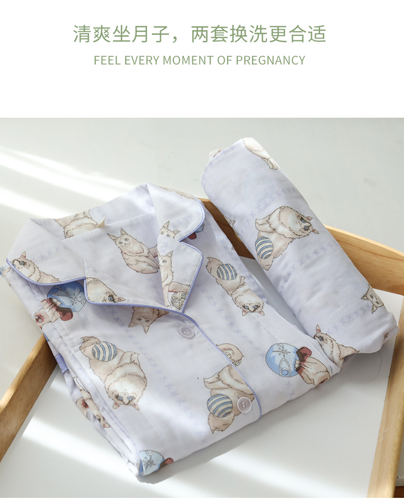 Cotton Maternity Clothes Double Gauze Pregnant Women Long Sleeve Pajamas Feeding Nursing Clothes Postpartum Nursing Home Clothes Thin Spot