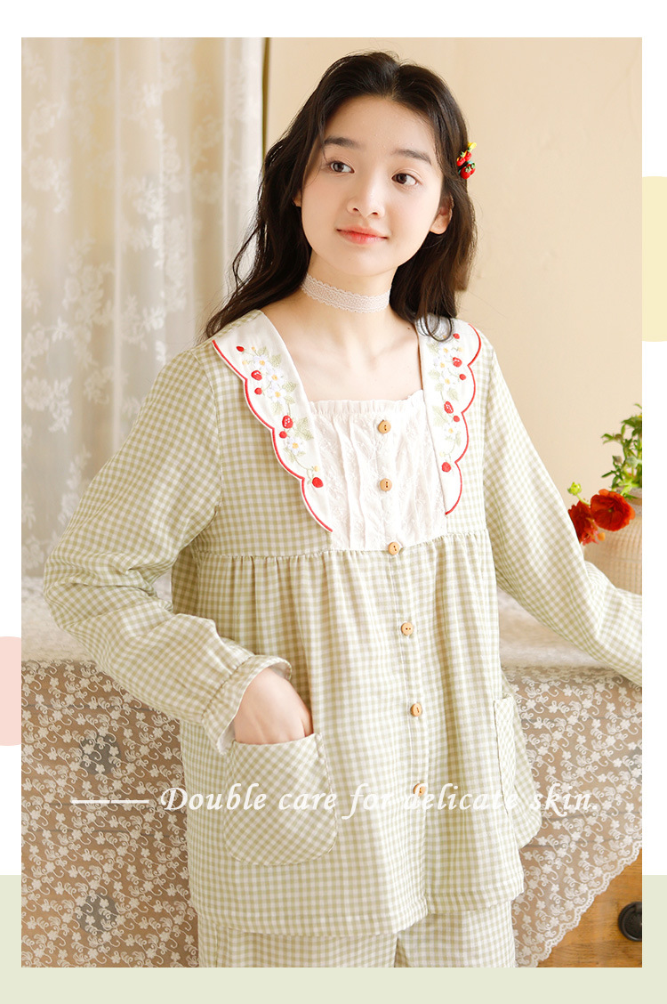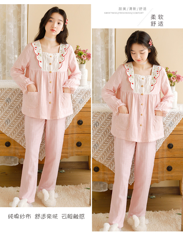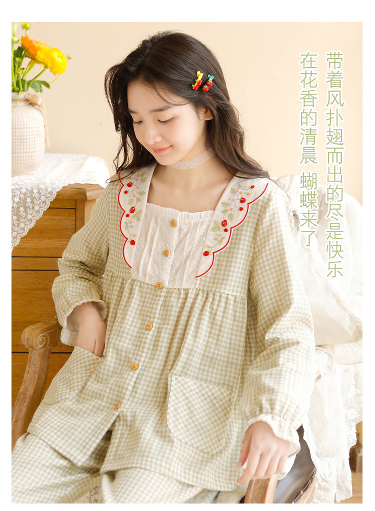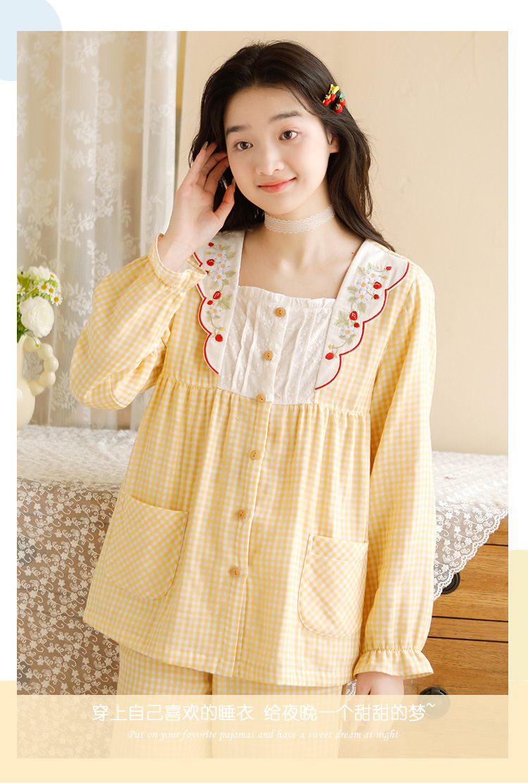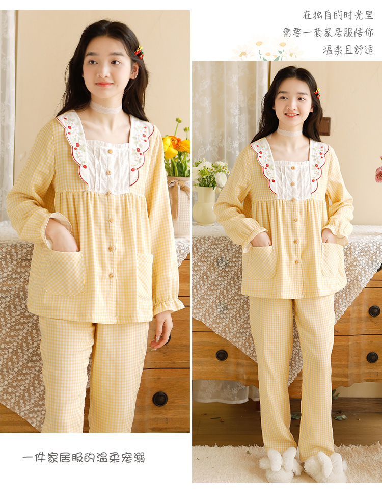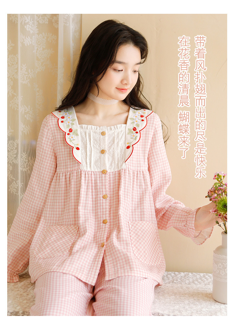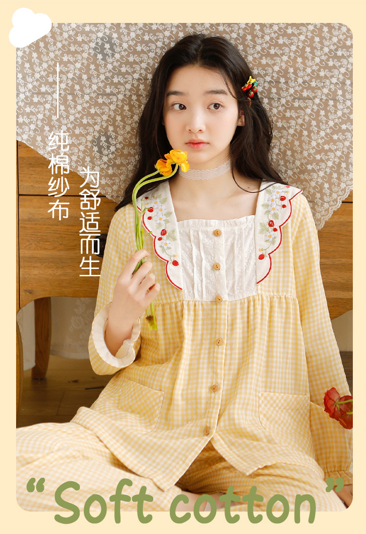 Ladies Spring And Summer New 2023 Long Sleeve Trousers Pure Cotton Gauze Thin Women's Home Wear Set